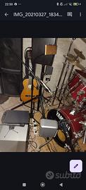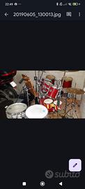 Yamaha by Premier made in U.K...perfetta..doppio muto, doppio timpano, rullante in acciaio, immacolato. Cassa con pedale, asta charleston, asta per piatto, sostegno centrale su cassa per i due muti, soste gno a terra per i doppi timpani. Pelli originali Yamaha,. la batteria è perfetta , nessun punto rovinato. Posso spedire a carico del compratore con "Tutto Subito".