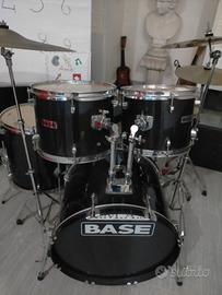 Rullante, charleston ,Tom 1, Tom2 timpano, piatto 15 e ride 20 con chiavino per accordare completissima e pelli in buono stato nera black lucida