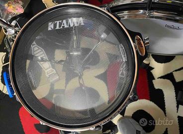Aggiungo nell'offerta anche set di pelli mesh Tama sui tamburi e Remo per la cassa per ridurre ulteriormente il volume e poter suonare anche di notte!