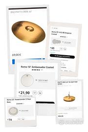 Incluse le meccaniche presenti in foto (pedale cassa, asta HiHat, asta ride)