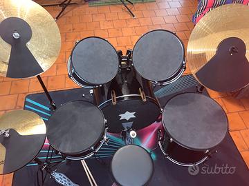 Vendo batteria colore nero , come nuova , composta da : seggiolino , charleston, rullante , grancassa , 2 tom , timpano , sostegno e piatto ride, sostegno e piatto splash, dischi insonorizzanti in gomma per tutti i tamburi e piatti della batteria e tappeto antiscivolo da mettere sotto la batteria.