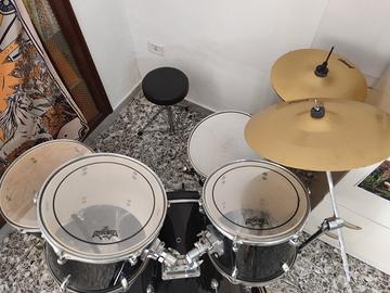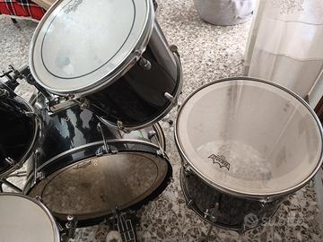 Batteria da studio in buone condizioni, usata poco e ceduta causa trasferimento imminente che mi impedisce di portarmela dietro. PREZZO TRATTABILE! Kit comprende: un kick con pedale (cassa), uno snare (rullante), due tom, un timpano, un ride e un charleston (hi-hat), bacchette 2A. Ottima per iniziare o per la sperimentazione. Ha dimensioni da adulto. Pelli Remo di ottima qualità in buone condizioni e pelle della cassa già forata per accogliere il microfono. A causa delle dimensioni importanti effettuo solo ritiro a mano nel centro di Lecce, si trova al 1° piano senza un ascensore (Dico la zona precisa in chat). Piccoli difetti: le pelli sono state usate e presentano piccolo segni delle bacchette. Per qualsiasi info e foto dettagliata scrivetemi in privato.