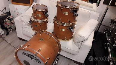 Batteria rarissima in legno di ciliegio prodotta per un paio d'anni, stesse meccaniche e tipo di costruzione della Orion , top di gamma. La vendita si riferisce ai 5 fusti 22x18-10×8-12×9-14×12-16×14, ne meccaniche, rullante, piatti ed altro. L'attuale produzione in ciliegio e' denominata black panther cherry the bomb e si aggira sui 3200 euro di media, prezzo di vendita e non di listino. Preferisco non spedire, non accetto scambi o permute.