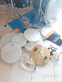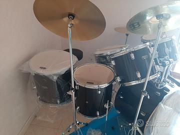 Vendo batteria acustica nuova mai usata, marca MAPEX Tornado TND5254TC ampliata con l'aggiunta di nr. 2 Tom, nr. 2 aste per piatti, doppie pelli Remo, piatti Meinl e set di custodie per il trasporto a euro 950