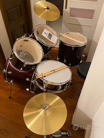 Vendo batteria acustica Mapex TND5254TCDR Tornado Dark Red acquistata per mio figlio,montata e mai usata.Inclusi due set di bacchette, di cui uno della ProMark.Strumento in condizioni perfette,pari al nuovo.