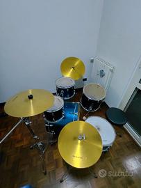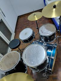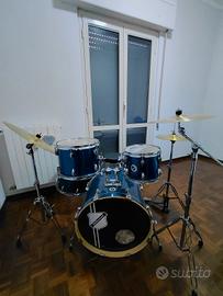 vendo questa batteria in ottime condizioni é stata usata solo 1 anno e tenuta sempre in studio musicale quindi sempre al coperto, la batteria ha tutte le pelli originali e le 2 dei tom sono un po consumate, per il resto é tenuta benissimo ne graffi ne spaccature.