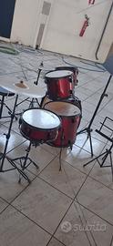 *Batteria Acustica Peace Demon DP-101 Wine Red 5 Pezzi Completa + Piatti* Vendo batteria acustica Peace Demon DP-101 colore Wine Red, finitura lucida. Set completo 5 pezzi: - Cassa - Rullante - 2 Tom sospesi - 1 Timpano a terra Fusti in mogano/pioppo selezionato con rivestimento. Hardware completo Ravenplate nero compreso. Inclusi piatti in ottone, pronta per suonare subito. Usata pochissimo, solo in casa. Nessun danno o graffio profondo sui fusti. Meccaniche perfette. Prezzo: 280€ leggermente trattabili Ritiro a mano Occhiobello. No spedizione.