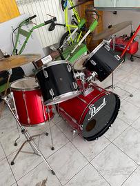Batteria acustica Pearl di colore rosso. Un set per chi ama la musica.