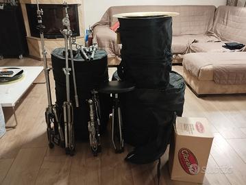 Vendo set batteria acustica HiPercussion in faggio rosso stagionato un anno. Laccato color bordeaux. Composizione: