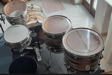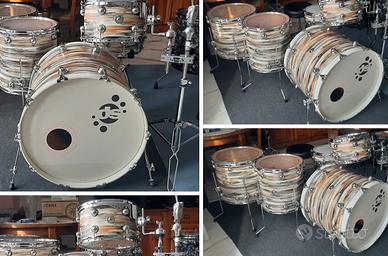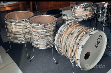 Vebdo batterua acustica DS cone nuova evolution all maple . Completa in acero nord americano con cerchi di rinforzo . Finitura in urban satin white . Set up :: 24x30/13x8/16x16/18x16/ e rullante 14x6.5