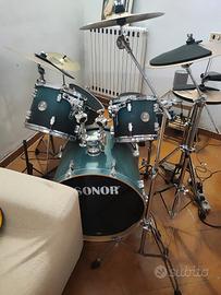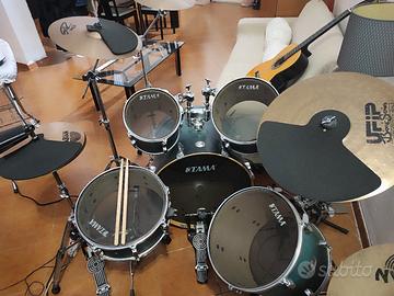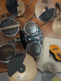 vendo per inutilizzo batteria come da titoloz completa di piatti (crash paiste, hit hat sabian, splash paiste, ride ufip Bionic series) solo ritiro a mano zona bari. la batteria monta pelli mesh da studio (insonorizzate). vendo o scambio con batteria rock