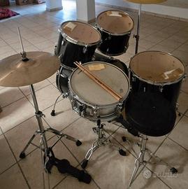 batteria acustica Sonor force , wrap originale nero, condizioni perfette cassa 22 tom 12 13 timpano 16, (seconda asta compresa di piatto che in foto non c è)completa di meccaniche , piatti Paiste e sgabello , posso cedere anche solamente fusti e meccaniche a euro 230, non spedisco.