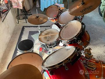 Batteria Tama composta da Tom da 10, 12, 13 e 14 pollici, timpano da 16 e doppia cassa da 22. Inclusi i pedali. Eventualmente vendo anche i piatti che possono essere aggiunti e pelli nuove.
