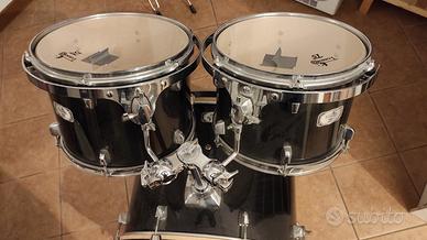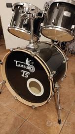 Vendo per inutilizzo batteria modello TAMBURO T5. Fusti: Pioppo multistrato Finitura: PVC Configurazione: Cassa 22″x16″ Tom 12″x9″ Tom 13″x10″ Timpano 16″x16″ Rullante 14″x5,5″ Hardware incluso: Asta hi-hat, asta a giraffa, reggi rullante, pedale grancassa e sgabello Piatti inclusi: Hi-Hat 14", Crash 16" Finitura: Black Sparkle