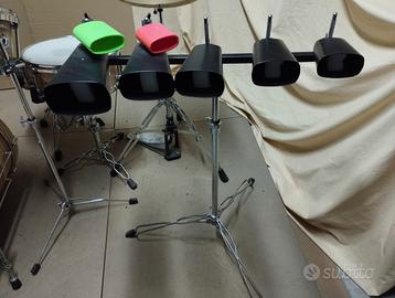 - set da cinque cowbell di varia misura + due block con stand;