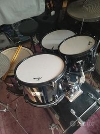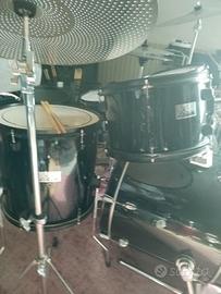 batteria acustica xdrum tutta in legno, wrap nero lucido, completa come foto: cassa 20 tom 10 12 timpano 14 rullo 14x4'5, hardware, piatti da studio, sgabello,chiavetta e bacchette. ideale per iniziare a suonare dai piccoli ai grandi