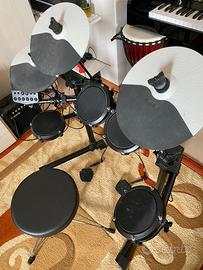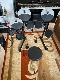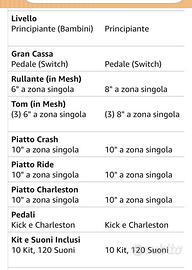 Ottima batteria per principianti, presa per mia figlia di 11 anni. La uso anche io da adulto. Sembra una vera batteria. Per il resto è un buon prodotto. La vendiamo per inutilizzo, siamo passati a una batteria più grande. Poco usata , nella confezione originale c’è display ancora sigillato. Come spazio vi serve circa 0,90 x 0,70 e se volete acquistare una cassa con amplificatore (in caso che vi permettano i vicini) , se no usate le cuffie in dotazione.
