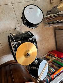 È composta da Cassa con pedale, 2 tamburi (rullante e Tom), un piatto con tutti i supporti che servono per montarla.