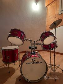 Vendo x inutilizzo batteria soundsation taglia junior completa di sgabello, piatto inclinato, doppio piatto battente, coppia di tamburi autonomi e corpo centrale . Usata poco e conservata bene con qualche segnetto.