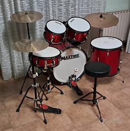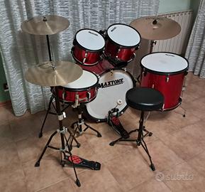Vendo a malincuore batteria Maxtone presa per mio fratello "batterista" che però ha smesso di suonare. La Batteria è completa possiede grancassa,rullante,tom 1, tom 2, timpano, crash con la relativa asta, charleston, seggiolino e la relativa chiave di accordatura. In aggiunta c'è annche un campanaccio della Pearl e inoltre un'asta a Giraffa con un piatto Ride Paiste 201.