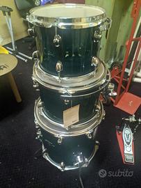 Vendesi pacchetto batteria acustica. Kit completo per suonare che include: Sgabello Bacchette Aste Piatti professionali Piatti Meinl in lega B20 e martellati a mano in Turchia. Usati ma ben conservati e perfetti nella forma. Incluso anche doppio pedale Tamburo. Vendo in blocco a prezzo vantaggioso causa difetti estetici dei fusti. Il suono è intatto, ben costruito e profondo. Modello top entry level.