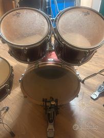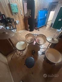 Vendo batteria completa Tamburo 75. La batteria è composta da: - Cassa - Rullante - 2 tom - Timpano - Piatti - Aste e supporti - Pedale cassa - Sgabello La batteria è funzionante ma ferma da tempo, presenta segni di utilizzo (come da foto). Ideale per principianti, sala prove o uso domestico. Vendo vista e piaciuta. Ritiro a mano.