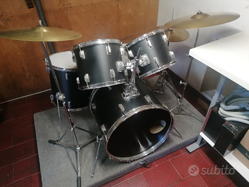 Batteria completa come da foto. Pelli cambiate da poco quasi come nuove. Dimensioni: cassa 500x570 timpano 420x420 tom 270x350 tom 250x310 rullante 340x190 Tel a Franco 3494942091 oppure 3279230191 Possibile prova. Nessuna spedizione.