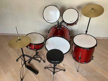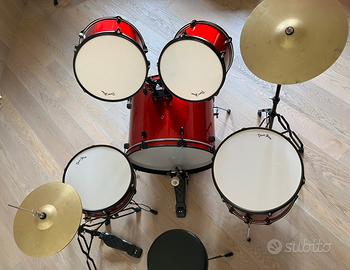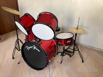 Batteria DareStone completa di rullante, cassa, timpano, 2 tom, charlestone e crash. Insieme chiave per tirare le pelli dei tamburi.