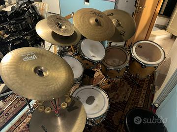 12, timpano 14, timpano 16, rullante 14, cassa 22, made in USA corredata da certificato di autenticità. aste e piatti tra cui, ZILDJIAN serie K, Charleston ZILDJIAN K, pedale DW 5000, case morbidi per il trasporto, altri componenti non specificati da visionare di persona eventualmente. Sono 6 pezzi. Collector's Made in usa