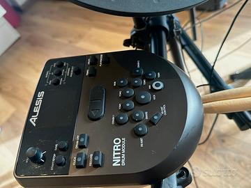 SET BATTERIA COMPLETO CON BACCHETTE INCLUSE L'Alesis Nitro Mesh è una batteria elettronica completa da 8 pezzi con tecnologia AlesisMesh head drum. Le pelli mesh danno una sensazione naturale e una risposta ultra silenziosa. L'Alesis Nitro Mesh presenta un rullante mesh a doppia zona da 8" e 3 tom mesh da 8". Include un drum kit completo: 3 piatti da 10", pedale Alesishi-hat, pedale della cassa ed un rack in alluminio a 4 montanti. Include anche tutti i cavi, l'alimentatore e la chiave della batteria. Tutto questo si collega al Modulo di batteria elettronica Nitro con centinaia di suoni di percussioni, 40 kit diversi e 60 tracce di riproduzione integrate. Modifica facilmente qualsiasi kit esistente o creane uno tuo utilizzando i 385 suoni di batteria, piatti e percussioni inclusi. All'interno del modulo troverai anche l’apprendimento integrato con 60 brani musicali da riprodurre e un metronomo. C'è anche un sequencer avanzato e un registratore di performance. Oltre alla connessione USB MIDI per l'utilizzo con computer e dispositivi mobili, il modulo ha jack MIDI In e Out in modo da poter collegare la tua drum machine, modulo audio o altri dispositivi audio dotati di MIDI . C'è un jack per cuffie, oltre a uscite stereo. L'ingresso stereo aux ti consente di ascoltare i tuoi brani preferiti sul tuo lettore CD o MP3.