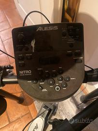 Batteria Alesis Nitro con pelli mash e pedale reale. Vendo la batteria perfettamente funzionante per scarso inutilizzo. Pelli perfette, cablaggio, pedali e piatti tutto in ottime condizioni. Non incluso, leggio sgabello e porta bacchette. Praticamente nuova