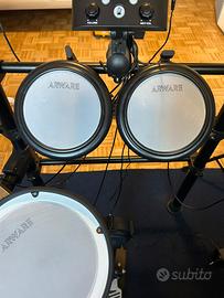 Batteria elettronica ARWARE: - Pad con Pelli mesh -Metronomo incorporato, 12 Drum kit -5 pad mesh: 1 pad 10” rullante, 3 pad 8” tom, 1 pad cassa -3 pad cymbals: HiHat, Crash, Ride - 2 pedali: pedale cassa meccanico, pedale HiHat elettronico