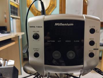 Vendo causa passaggio ad acustica batteria elettronica Millenium MPS 150X con pelli mesh perfettamente funzionante 8 pad come da foto usata poche volte in ottimo stato compreso cuffie e bacchette ideale per principianti o studio, ritiro presso la mia abitazione purtroppo senza imballi.