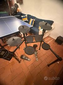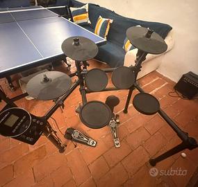 Vendo Batteria Elettronica Medeli modello DD630S, completamente regolabile sia in altezza che in ampiezza con l’apposita chiavetta in dotazione, funzionante al 100% e in ottime condizioni dato lo scarso utilizzo, come mostrato in foto comprende il Charleston con il rispettivo pedale, il Crash, il Ride, il Rullante con variazione di suono in base al colpo, 2 Tom, 1 Timpano, e la Grancassa (anch’essa con il pedale), tutte le parti collegate con cavo al computer principale dal quale si può: Registrare e riprodurre basi in sottofondo, sono integrati oltre 400 suoni, 30 kit programmati e 10 drum kit utente.