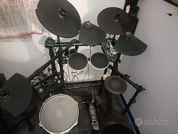 Vendo batteria elettronica Millenium MPS-100 pesantemente potenziata e customizzata. Rispetto alla configurazione originale, il kit è stato espanso con piatti aggiuntivi e pad extra inoltre un rullante Millenium con pelle mesh e un Pad ROLAND PD8. grazie a una seconda staffa montata per offrire un'esperienza professionale e versatile. Caratteristiche principali: Modulo sonoro con 215 suoni e 50 basi musicali. Metronomo integrato. Uscita cuffie e MIDI Out per collegamento al PC. Kit completo di rack, pedale cassa e cablaggi originali. in dotazione anche sgabello. Lo strumento è in ottime condizioni e perfettamente funzionante. prezzo poco trattabile.