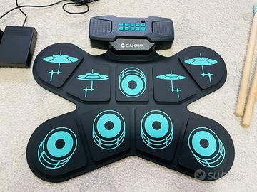 Set Batteria Elettronica Portatile: Tamburo Elettronico Portatili con 9 Pad, Altoparlanti Incorporati,Bacchette per Batteria e Pedali