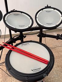 Nel prezzo è compreso: sgabello, cuffia, pedale cassa e bacchette rosse Nova 5A (che non sono vendute da Roland nel kit), ideali anche per chi si sta avvicinando al mondo della batteria vuole cominciare a suonare.