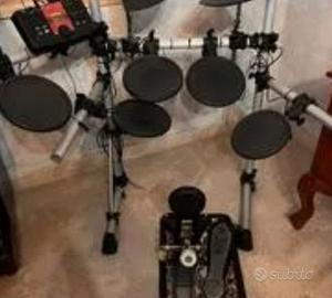 Come nuova, batteria elettronica, ottima per suonare con le cuffie, anche la notte senza disturbare . Pedali Yamaha, piatti tondi non a spicchio come le batterie economiche. Munita di piatto aggiuntivo. Totale tre piatti, tutto nuovissimo, mai usato fuori casa.