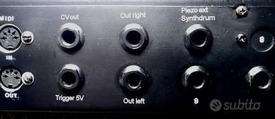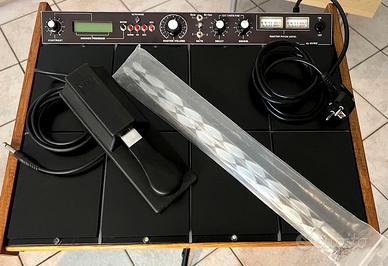 VENDO UNICA E RARA COME DA FOTO VERE DEL PRODOTTO COMPLETA DI SUPPORTO BESPECO, PEDALE PER CASSA E BACCHETTE IN PLEXIGLASS ILLUMINANTI. DRUM A PAD IN GOMMA AMMORTIZZATI CON LED MONITOR AD ALTA LUMINOSITA' CHE SI ACCENDE AD OGNI COLPO DEL SINGOLO PAD. PROTOTIPO PERSONALIZZATO CON L' AGGIUNTA DI UN SYNTH PAD. USCITE PER PAD SINGOLI ESTERNI, OUT AUDIO STEREO, CUFFIA , MIDI IN E OUT, CV-GATE. MOLTI KIT PRESET INTERNI PIU' MEMORIE USER PER SALVARE I PROPRI KIT. OGNI STRUMENTO E' COMPLETAMENTE EDITABILE. POSSO INVIARE VIDEO DEMO. POSSO SPEDIRE.