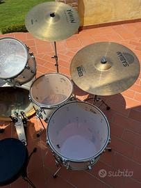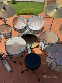 pezzi: 3 tom, 2 timpani, 1 cassa, 2 crash, 1 ride, 1 charleston, 1 rullante