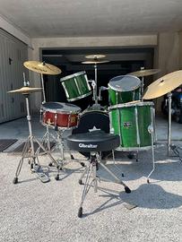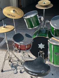 Batteria acustica completa di tutti i pezzi, con un piatto in più. Incluso sgabello. In regalo 2 bacchette. Una nota: si è rotta la staffa di montaggio del Tom.