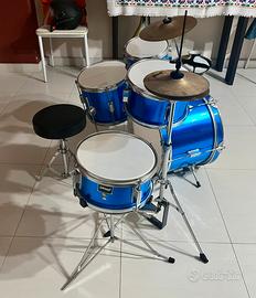 - È presente una gran cassa, un piatto, un charleston, un rullante, due tom, e un timpano.
