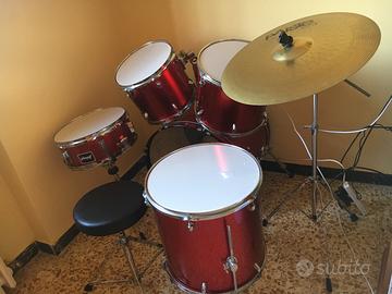Vendo per cambio strumento, batteria tenuta molto bene. Manca il suo crash e il suo charleston originali venduti a parte. Dotata di un piatto PAISTE 101 (raid) misura 20” con relativo supporto a giraffa. come in foto, acquistato successivamente.