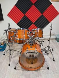 Vendo come da titolo bellissima batteria Ludwig Classic Maple a 6 strati di acero acquistata nuova nel 1979 cassa 22"+ Tom 10"12"14" e Timpano 16" + reggirullante + asta piatto + pedale Hi-Hat originali della casa.