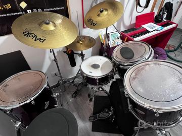 Batteria completa di cassa, 2tom, rullante, timpano, charleston, 2 piatti.