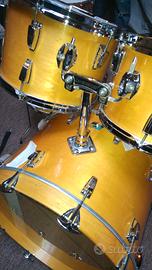 Finish dorato/sparkle su gusci 5-ply maple/poplar pre-1976, tension rods a 3 fori, cerchiati. Tutti i fusti provvisti di stoppini regolabili interni sulle pelli per accordatura precisa. Condizioni eccellenti, fusti arancioni/dorati perfetti per vintage rock/jazz.