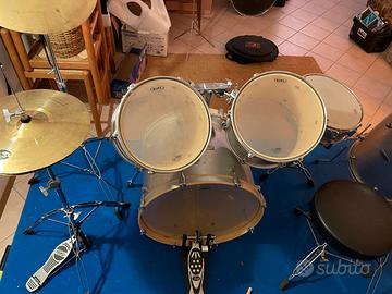 Vendo batteria acustica Mapex (serie Q/Voyager) color argento satinato. Il set è completo di fusti e tutto l'hardware necessario per suonare. Ottime condizioni funzionali, pelli Remo UX incluse. • Fusti: Cassa, due Tom, Timpano e Rullante in legno. • Hardware: Asta Charleston (Hi-Hat), asta dritta per piatto, reggirullante. • Accessori: Sgabello incluso. [Nota importante] Il set viene venduto senza piatti (i piatti visibili in foto non sono inclusi) e senza Pedale della gran cassa. Ideale per principianti o per studio. Disponibile per visione e prova. Ritiro a mano (data la dimensione del pacco). Prezzo trattabile