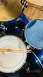 Vendo batteria maple custom manifattura artigianale, fusti in legno betulla in ottime condizione artigianali dal colore blu metallizzato molto bello, dal suono caldo e profondo misura: cassa 22 tom 12” e timpano 13”. Rullante 14” mapex Meccanica e pedali mapex. Piatto ufip crash e ride, charleston compreso. Subkik per amplificare grancassa stessa lavorazione e finitura di colore ricavato dal tom da 10” (Per chi non conosce un microfono dinamico per microfonare la grancassa e avere più pressione. Risposta in frequenza: 50 - 2.000 Hz Con Woofer classico come trasduttore del suono.) Incluso supporto e sgabello aste e piatti. Pelli nuove montate di recente remo pinstripe e evans sui tom, evans sulla grancassa e remo pinstrepe coated sul rullante.
