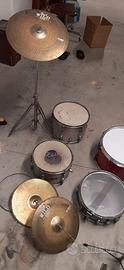 Batteria composta da 5 tamburi di cui 2 grandi,3 piatti Pearl wild 500 e pedanina.