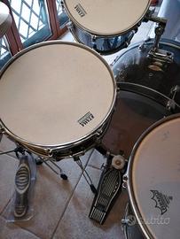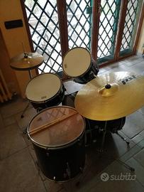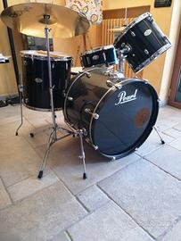 Batteria acustica Pearl nera, usata. In buone condizioni, completa di Charleston etc.